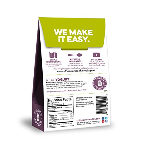Cultures for Health Bulgarian Yogurt Starter Culture, Organic, Non-GMO, Reusable Heirloom Variety, Probiotic Blend, Use In Any Yogurt Maker For...