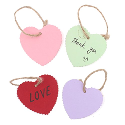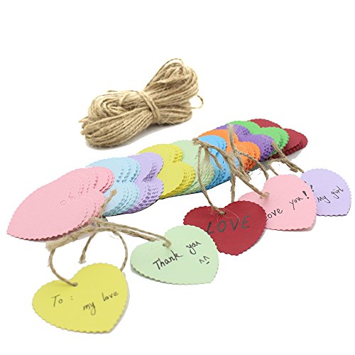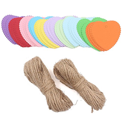Zicome 150 Piece Colorful Heart Shaped Kraft Paper Gift Tags with 50 Feet Natural Jute Twine, 10 Bright Colors