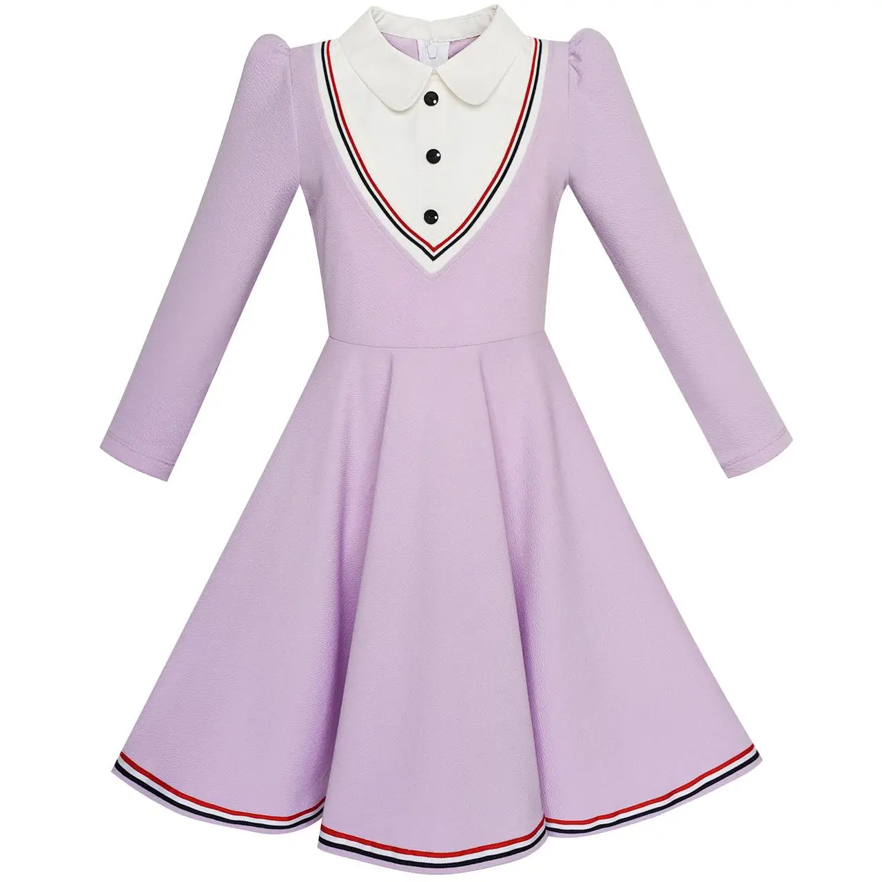 Good quality school uniform dress with comfortable and strechy material. Cute long sleeve design and 2-in-1 design with white collar for your little girls and big girls. Perfect for school party dress and everyday wearing. Following size means age ranges for girls, they are for general guidance only. For most accurate fit, we recommend checking detailed measurement before purchase.