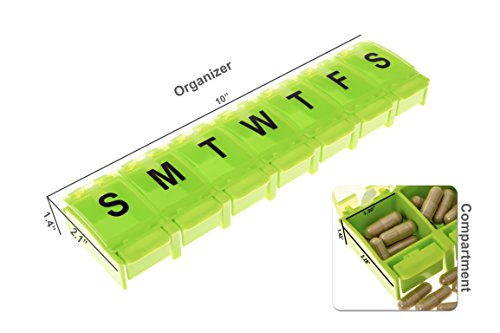 BIG LETTERS - each compartment of the pill organizer is clearly marked with easy-to-read big letters of each day