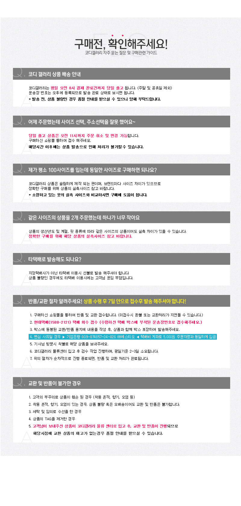 특이 사항 배송, 변경, 반품 환불에 대한 문의는 위 연락처로 문의 주세요.