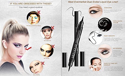 Evermarket dual-ended liquid eyeliner with double ends is an ingenious design specially for women. One end is with thick brush head, sliding smoothly draw the outline of eye lines, easily show the stereo depth big eye. The other end is with fine brush head, and can effectively adjust the detail, highlight the three-dimensional contour and release the charm of large eyes. Use the mineral pencil tip for smudge-proof everyday definition or to create a sultry smoky eye. Flip to the liquid liner for bold intensity or detailed definition that glides on with ease-perfect for getting a quick classic cat eye.