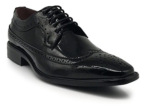 Binding : Apparel Product Description These fine faux patent leather tuxedo spectator is a shoe with black and white colors upper, perforate wingtip oxfords. This is not only a pair unique and stylish dress shoes, they will also be functional. It's the best looking shoes for musicians,swing dancers and men who admire the glorious twenties and thirties. The two tone color spectator shoes look fantastic with white or black formal suits. That will more likely earn "Oh, how elegant" compliments. It can be used as formal wear or costume party. It will always exude the flair of the Golden Age of men's style and elevate your outfit. The key is to keep all other pieces subtle, so the shoes can shine without overpowering your outfit.Why paying hundreds for a pair tuxedo shoes that you can get the same looking pair for much lower here. 0