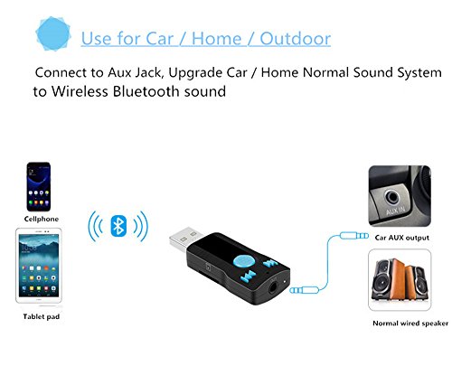 Studio : lutuo Publisher : lutuo Binding : Electronics Product Description Wider compatibility: This Bluetooth audio adapter is ideal for turning wired speakers and headphones into a bluetooth wireless one. Features: 1.USB power supply 2.Support audio output 3.Support Music play from TF card 4.Support MP3 format music play 5.Support BT hands-free/Hang up/Reject/Redial 6.Support BT stereo music playing (A2DP) 7.Echo cancellation and noise suppression (CVC) function 8.Auto Power-off memory 9.Support PC TF card reader 10.Bluetooth version 3.0 11.Transmission distance up to 33ft /10m 12.TF card: Support 1-32G 13.Charging Voltage:DC 5V Package Include: 1 x USB bluetooth adapter 1 x 3.5mm Audio Cable 1 x User manual