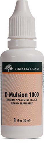 -. Binding : Health and Beauty -. Brand : Genestra Brands -. EAN : 0883196108701 -. Feature : lsified vitamin D to help in the development and maintenance of bones and teeth and increase absorption of calcium and phosphorus / 1 fl. oz. / This product is vegetarian -. IsAdultProduct : 0 -. Label : Seroyal -. LegalDisclaimer : * These statements have not been evaluated by the Food & Drug Administration. These products are not intended to diagnose, treat, cure or prevent any disease. Please contact your healthcare professional immediately if you experience any unwanted side effects. The information contained herein is for informational purposes only and does not establish a doctor-patient relationship. Please be sure to consult your physician before taking this or any other product. -. Manufacturer : Seroyal -. MPN : 1159 -. PackageQuantity : 1 -. PartNumber : 1159 -. ProductGroup : Health and Beauty -. ProductTypeName : HEALTH_PERSONAL_CARE -. Publisher : Seroyal -. Studio : Seroyal -. Title : Genestra Brands - D-Mulsion 1000 - lsified Vitamin D - Natural Spearmint Flavor - 1 fl oz (30 ml) -. UPC : 883196108701