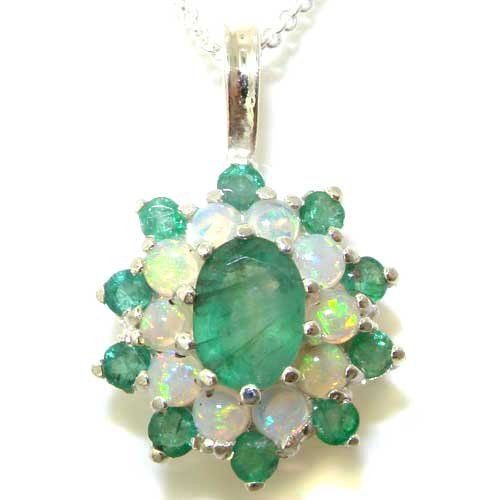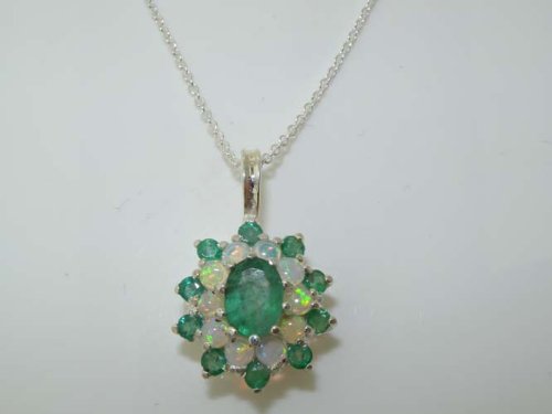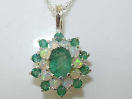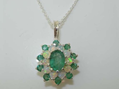 -. Title : Luxury Ladies Solid 925 Sterling Silver Ornate Large Vibrant Natural Emerald & Opal 3 Tier Large Cluster Pendant Necklace - Ideal for Christmas, Birthday, Anniversary or Mothers Day Gift