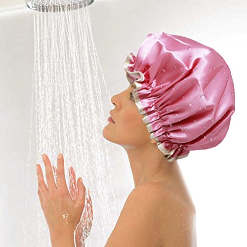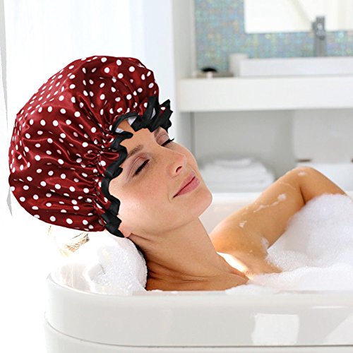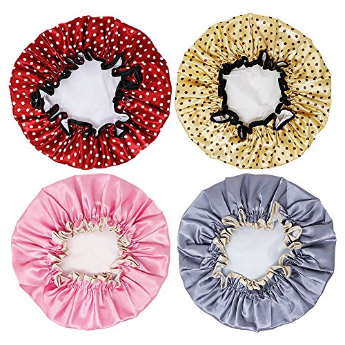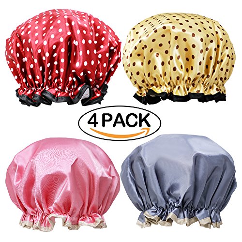 -. Title : VAMAI Shower Cap with Waterproof Mold Resistant Double Layer Lined Elastic Band Dot Pattern Bath Hair Cap 4 Pack
