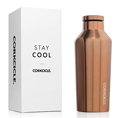 Made for Mountains, cities, beaches, and homes, the Corkcicle Canteen is the last beverage holder you'll ever need. It keeps keep beverages hot for over 12 hours or cold for over 25, features non-slip technology with shatter-proof construction, and comes in a sleek, modern design. With a food-grade stainless steel interior lining, the Corkcicle Canteen doesn't affect or retain taste and is easy to clean, making it suitable for switching between Coffee, ice water, and more delicately flavored drinks like wine. It also features an industry-leading three layers of insulation. This eliminates condensation from cold drinks and protects the hands from hot ones while providing the thermal retention of much larger, bulkier, and less attractive thermoses. Spin it, twist it, shake it, the Corkcicle Canteen won't leak from its threaded screw top. It has patented, flat, easy-grip sides as well as a non-slip bottom. Even if your Corkcicle Canteen manages to Fall out of your hands, its quality stainless construction won't break or shatter. Whether you're drinking water or wine, by the pool or on the Ski lift, the Corkcicle Canteen has you covered. Features a range of colors and finishes in three sizes: 9 oz. (Cup and a half of Coffee) 16 oz. (2 glasses of water) and 25 oz. (Bottle of wine). get one for yourself or someone special today!.Feature