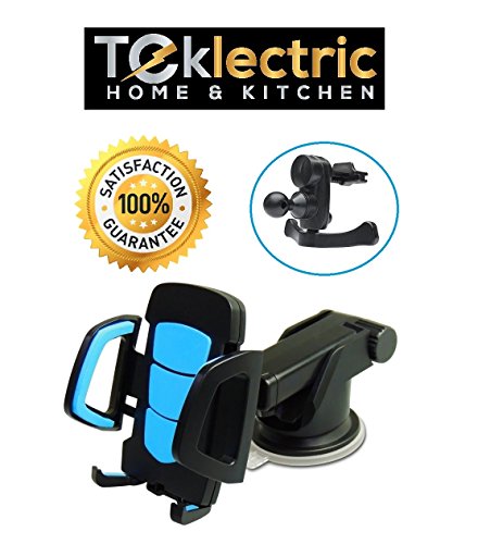 Teklectric 2-in-1 Cell Phone Car Mount - Telescopic Suction Cup Mount + A/C Vent Mount - Fits Any Phone
