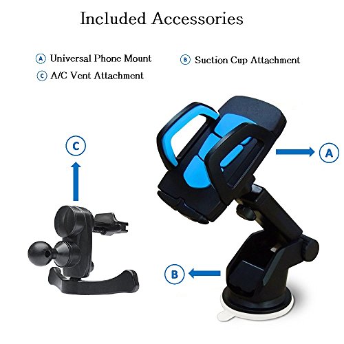 DUAL FUNCTION - Teklectric 2-in-1 Cell Phone Car Mount be applied to the windshield, dash board, or air vent of most cars, trucks, and vans.