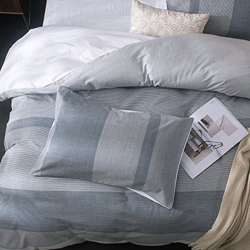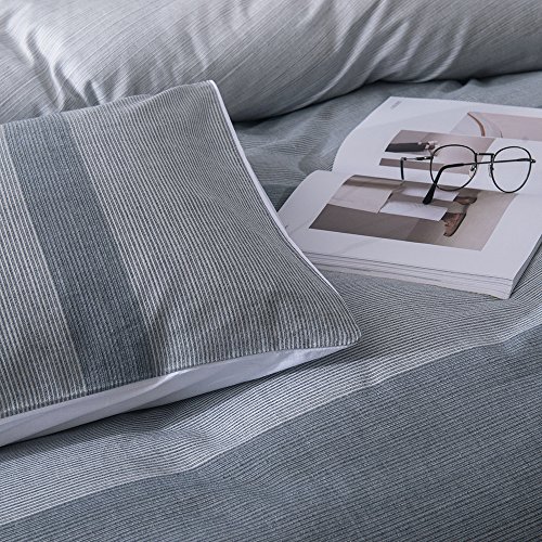 This cosy duvet cover and pillowcase set features 100% cotton yarn dyed stripes on its face,the yarn is dyed before weaving,with the 100% cotton white reverse in 180 thread count.The set affords a supreme softness and a smooth feel, as well as offering enhanced breathability to keep your temperature regulated while you sleep.