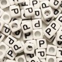 White Plastic Cube Alphabet Beads, Small, 6mm, Letter P, 100 pcs