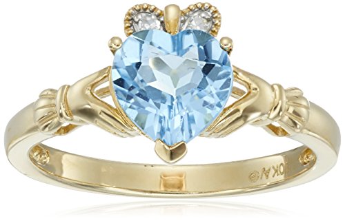 -. Binding : Jewelry -. Brand : Amazon Collection -. Color : Blue -. Department : womens -. Feature : All our diamond suppliers confirm that they comply with the Kimberley Process to ensure that their diamonds are conflict free. / Imported -. Label : Andin International -. Manufacturer : Andin International -. Model : RW1142FBS6AM-Parent -. MPN : RW1142FBS6AM-Parent -. PartNumber : RW1142FBS6AM-Parent -. ProductGroup : Jewelry -. ProductTypeName : FINERING -. Publisher : Andin International -. Studio : Andin International -. Title : 10k Yellow Gold Heart-Shaped Blue Topaz and Diamond-Accent Claddagh Ring (.016 cttw, I-J Color, I2-I3 Clarity)