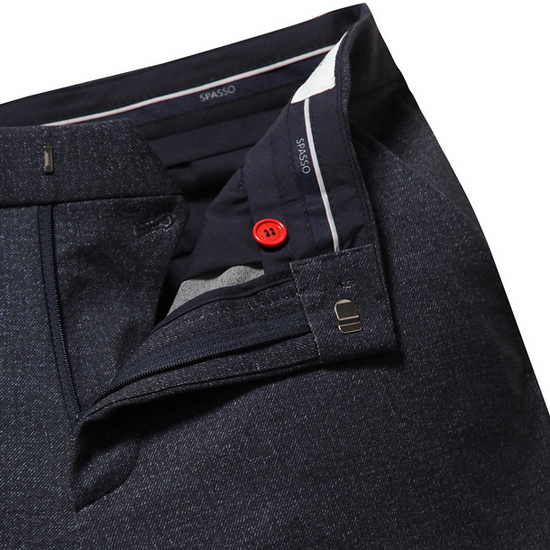 - 잔조직 프린트 텍스쳐를 적용하여 포인트를 준 남성 팬츠.