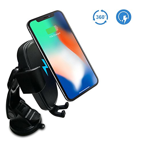 -. Feature : 【Fast charge modes】: Fast Wireless Charging(1.4 times faster than standard wireless charger pad) ONLY available for Qi Wireless Fast Charge Enabled Devices Such As Samsung Galaxy Note 8, Note 5, Galaxy S6 Edge+, Galaxy S7, S7 Edge, S8, S8 Plus models. Qi wireless standard charge Devices like iPhone 8/X will charge at regular speed. Some devices may require an additional wireless charging receiver (Not Included) / 【2 Install Ways】: Support vent mounting seat and Bracket base installation as your prefer.Air vent installation way helps cool down your phone while charging; Bracket base way supports 360° rotating,you could adjust your phone to the best position / Includes a Micro USB charging cable to provide power to the mount as well as a dashboard pad for mounting on almost all types of surfaces (please note, most likely will not work on leather/ vinyl dashboards) / 【Auto Phone Gripped】: Gravity and Linkage design, when you put your phone into it,the two sides will automatically grip your phone; Slip Upwards to take your phone out. One hand operation, easy and convenient / 【Correct Charging Method】: Take off your phone case or use slim case and adjust the Bottom Bracket make your device in the sensor center location on the wireless charger. BTW: Samsung Note 8 or other large size mobile phone, need to make the bottom bracket fall into the last stall.