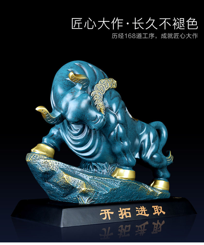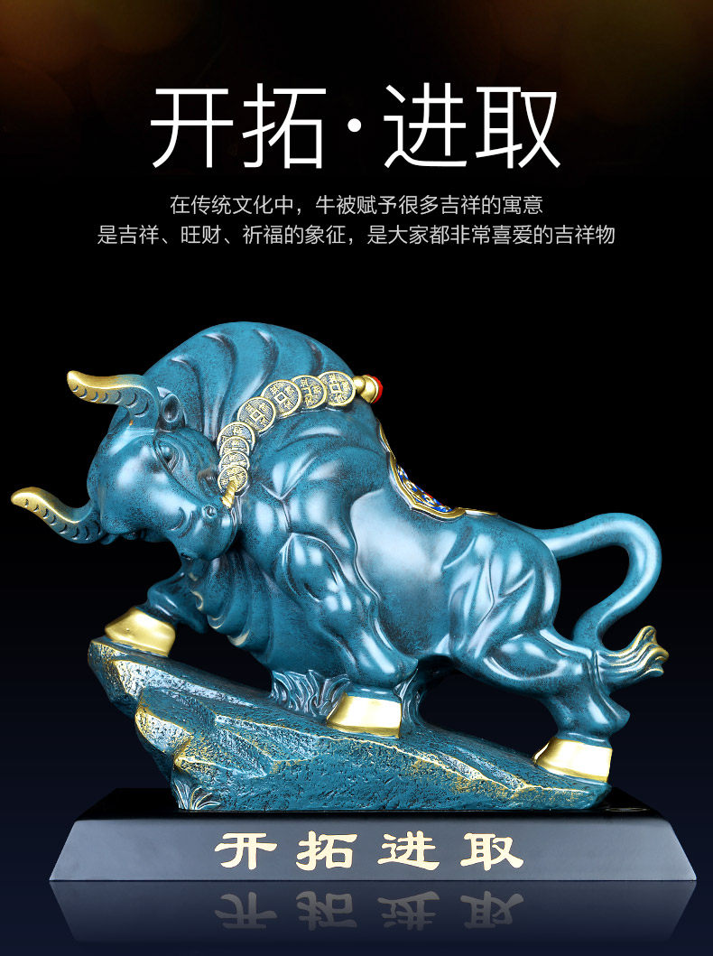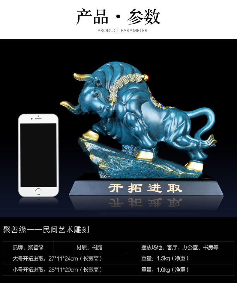 聚善缘开拓进取牛摆件华尔街牛炒股神器风水牛办公室桌面招财摆件