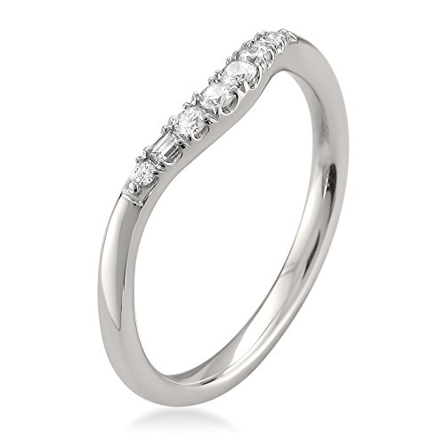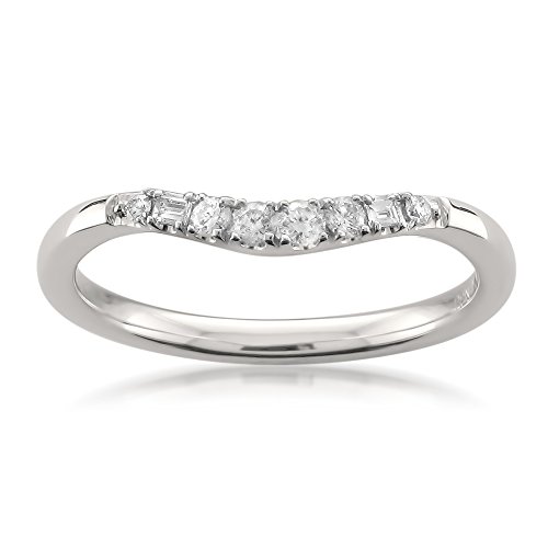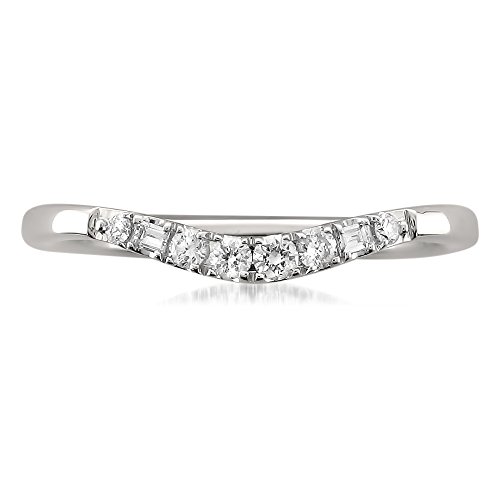 -. Title : 14k White Gold Baguette & Round Diamond Curved Wedding Band Ring (1/7 cttw, H-I, SI2-I1)