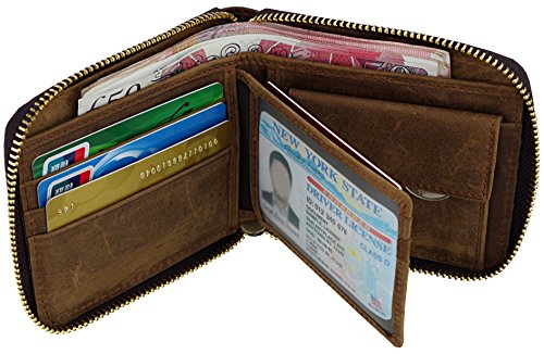 -. Title : Admetus Men's Genuine Cow Leather Zip-around Bifold Wallet Multi Card Holder Purse
