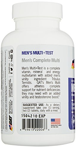 -. Title : GAT Mens Multi + Test, Premium Multivitamin and Complete Testosterone Boosting Support with Tribulus Terristis, 60 Tablets/30 Servings