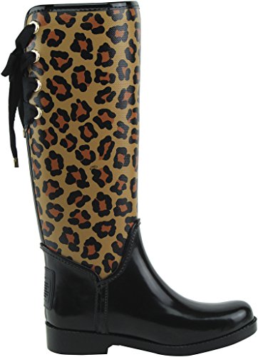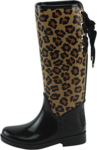 Pretty ribbons lace up the back of this lightweight rubber rainboot. Finished with precise stitching and contrast leather trim, its equestrian-inspired design is made to withstand all manner of inclement weather. Imported. Style A00632.Feature