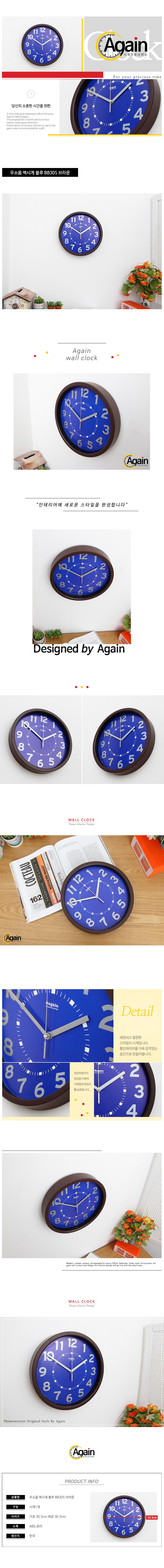 - 품명 및 모델명무소음 벽시계 블루 BB305 브라운