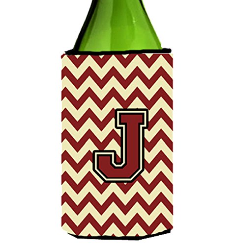 Letter J Chevron Maroon and Gold Wine Bottle Beverage Insulator Hugger CJ1061-JLITERK