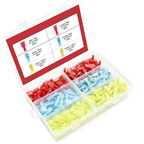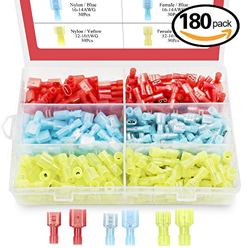 Hilitchi 180pcs Nylon Fully Insulated Male / Female Spade Wire Crimp Quick Disconnects Wire Terminals Connector Set