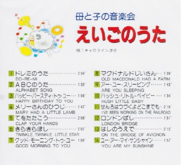 「ドレミのうた」「ABCのうた」など、全14曲収録。(歌詞カード付)