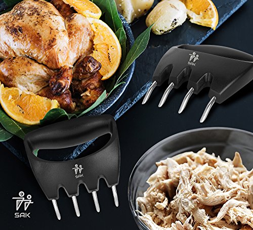 SAK Meat Claws Set - STAINLESS STEEL Forks & Extra Strong Grip - Pulled Pork shredders - 2 Metal Hooks - Rust Free Durable Metal Tips - Strongest Bear Claws - Grilling BBQ accessory - Premium Quality
