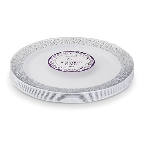 Hot Stamp White & Silver Rim Lace Plates Every Pack Includes 10 - 6'' Inch Plates