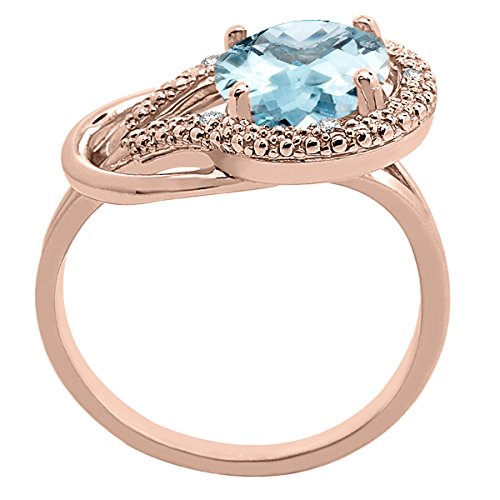 -. Title : Aquamarine and Diamond Love Knot Ring in 10K Rose Gold