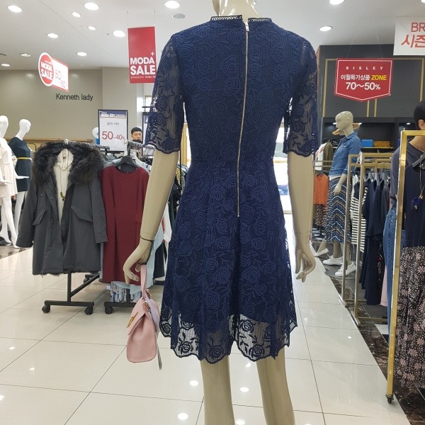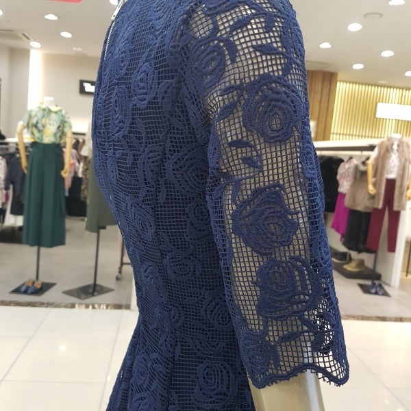 장미 무늬의 레이스가 화사하면서 멋스러운 반팔 원피스입니다
