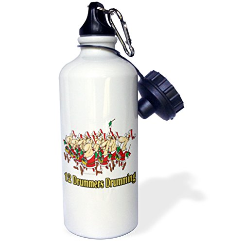 3dRose wb_104437_1 "Twelve Drummers Drumming" Sports Water Bottle, 21 oz, White