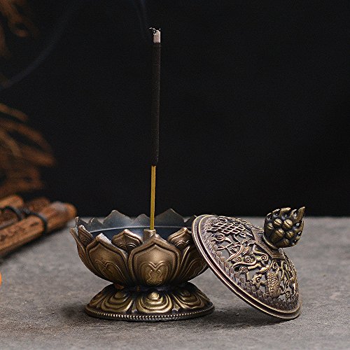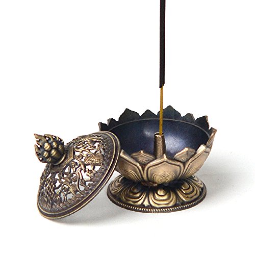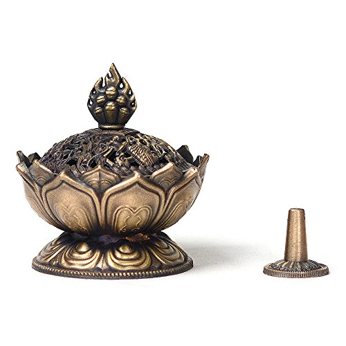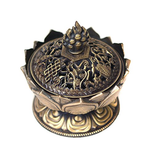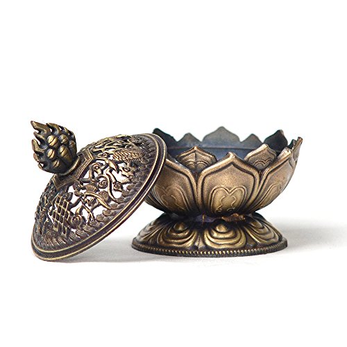HJXL Lotus Flower Chinese Buddha Alloy Metal Incense Burner Incense Holder Handmade Censer Bowl Buddhist Decor, Home Decoration (bronze)