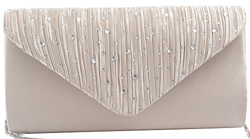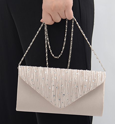 Pulama Pleat Satin Hot Fix Flap Evening Bag Elegant Handy Clutch Shaped Shoulder Bag (Elegant Lady)