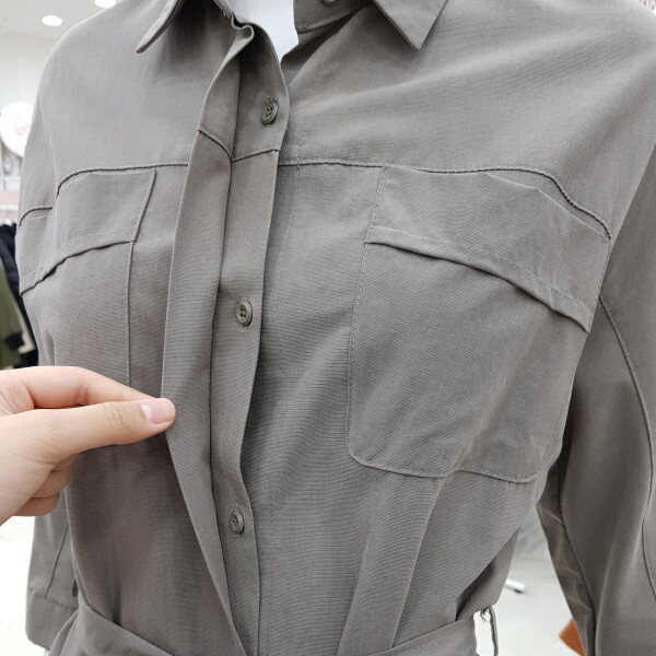 7부소매의 원피스에요~허리에 끈이 있어 허리 조절이 가능하고 단추여밈이라 오픈해서 입으시면 셔츠나 트렌치코트로도 활용 가능하세요!컬러는 카키와 핑크 두가지에요~
