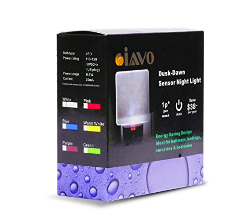 [Pack of 2] Iavo Auto ON/OFF Plug In LED Night Light with Dusk to Dawn Sensor (Bright Warm White/Yellow/Amber Glow)