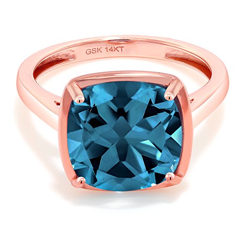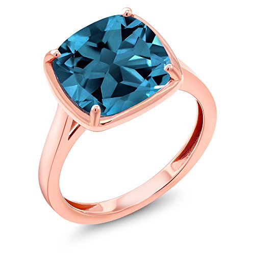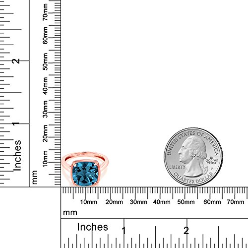 -. Title : 4.35 Ct Cushion London Blue Topaz 14K Rose Gold Engagement Ring (Available in size 5, 6, 7, 8, 9)