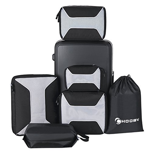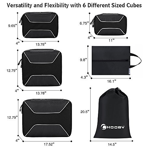 6 Set Packing Cubes-(4 Cubes + 1 Laundry Bag + 1 Shoes Bag)Travel Luggage Packing Organizers&Compression Pouches(Black)…