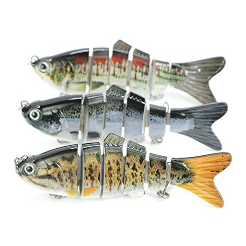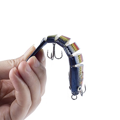 -. Title : 6 Segments 3D Life Like Fishing Lures Multi Jointed Swimbait Hard Bait with Fishing Tackles Wobbler, 10cm/4" Two #6 Fishing Treble Hooks, Artificial Crankbait