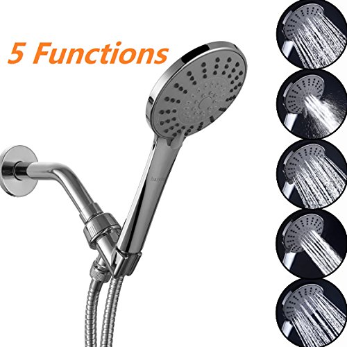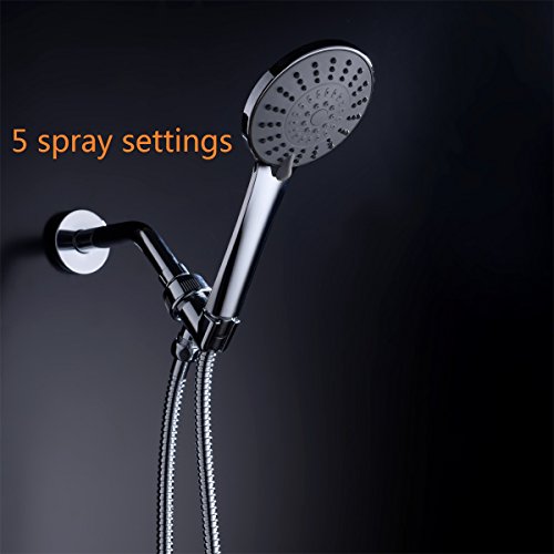 haiying Handheld Shower Head 5 Spray Settings Luxury Spa Detachable Handheld Showerhead 60 inches Stretchable Stainless Steel Hose Handheld Showering Components Chrome