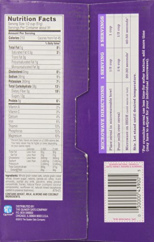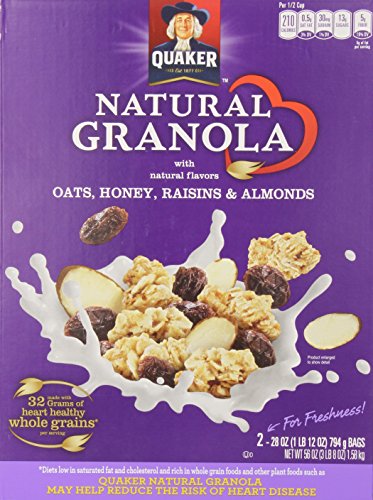 -. Title : Quaker Natural Granola Oats, Oats, Honey, Almonds and Raisins, 2 of 28-Ounce bag