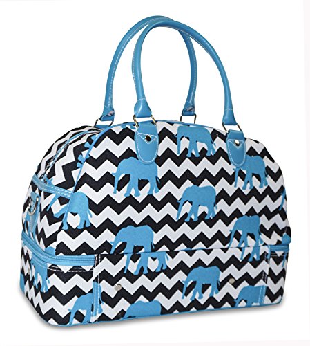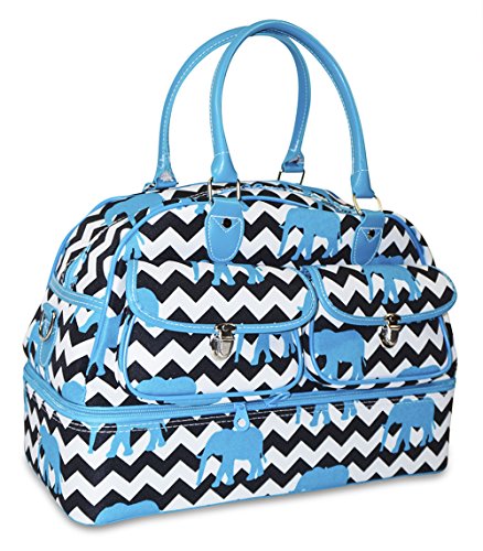 Product Description Ever Moda elevates your travel experience with its Women's Drop Bottom Duffel Bag Collection - the pinnacle of design innovation, engineering, functionality and performance. The brand Ever Moda has a commitment to making luggage with functional lightweight features and components. The result is a collection of cases that are lighter and stronger while offering increased packing capacity, smart functionality, easier maneuverability in a collection of bright colored patterns and prints. This collection is constructed of strong 600 denier polyester fabric with nickel plated zipper and hardware finishes. The versatile 2 compartment bag is extra-roomy with a separate zippered bottom compartment that offers additional travel accessory space for items such as shoes, toiletries, makeup and hair tools. This individualized area keeps these items away from the main clothes section. The area can also be used as a laundry compartment keeping soiled clothes in there own space when one returns from a weekend getaway. Interior features include adjustable double loop tie-down compression straps to keep items secure in place. Interior zip pockets provide additional space for those smaller accessories. Nickel matte foot studs on the bag floor eliminates direct fabric floor contact for risk of soiling. With detachable adjustable shoulder straps it can be carried as a cross body duffle bag if needed or if a travel shoulder bag is not your style, then its 8 inch handle drop provides the look of a doctor bag style handbag. Two nickel plated tuck lock clasp exterior pockets offers plenty of additional room for all travel accessories that one needs to have quick access to. The Ever Moda Drop Bottom Duffel Bag Collection fills the needs for those requiring a travel duffel for an overnight, weekend, carry on requirement. 0