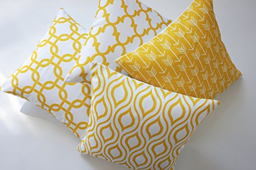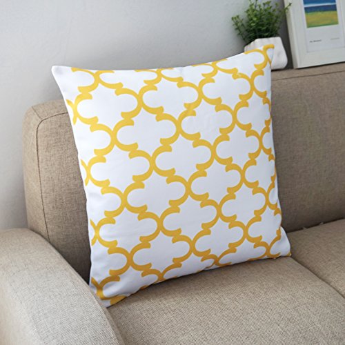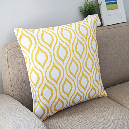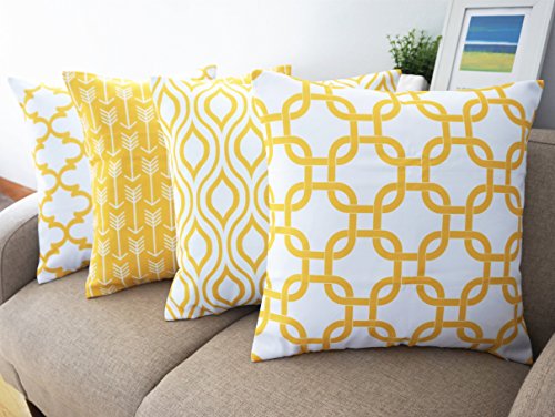 Howarmer Canvas Cotton Throw Pillows Cover for Couch Set of 4 Lemon Yellow Accent Pattern 18 X 18-inch