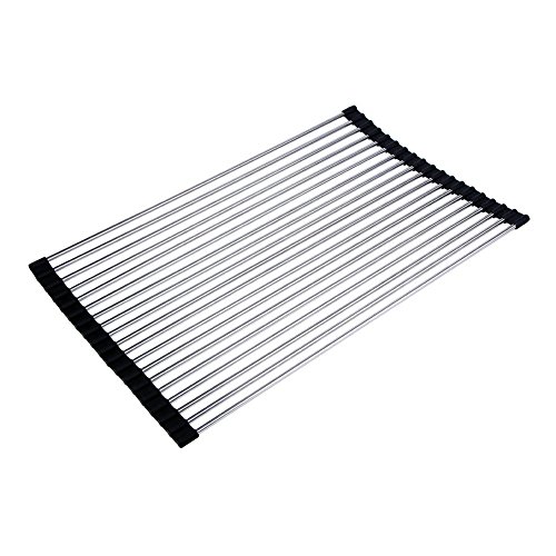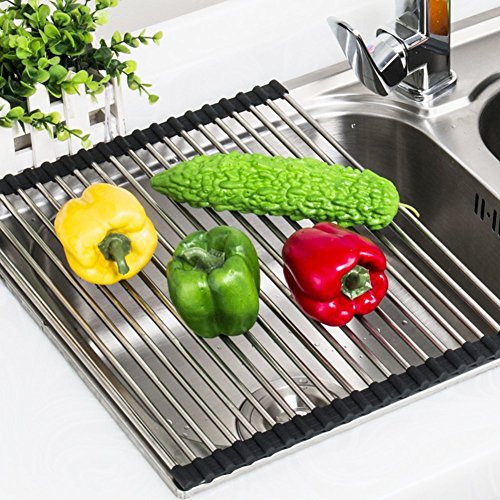- ✔ STAINLESS STEEL DRAINING RACK: the non-rust and uncoated stainless steel with the durable grip silicone provide an easy cleaning solution when it is dirty, just wipe it with cloth, modern look for your kitchen and perfect spacing-saving design, easy for air-drying washed dishes, vegetables and fruits