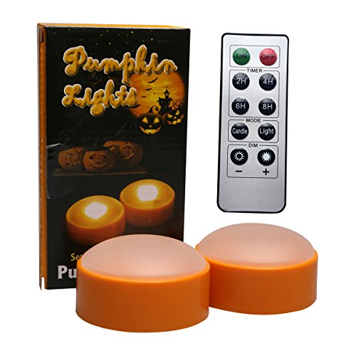 - EASY TO USE WITH REMOTE, you can operate the pumpkin lights by using a remote from up to 20 feet away. EASY TO USE WITH TIMER, four auto-on auto-off daily cycle timers are available. You can set the timer and let the pumpkin lights turn on and off automatically.