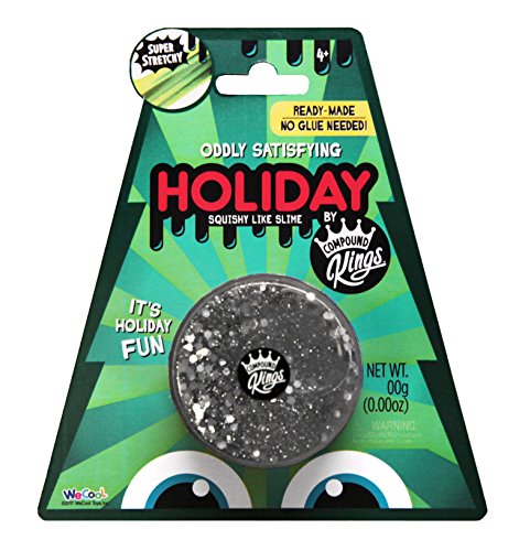 Get your hands on the hottest toy this holiday season. Compound Kings Squishy Like Slime Compound is the best slime toy on the market. So, buy a bunch this Christmas for friends and family. Perfect for the kids, great in the stocking, and even an entertaining gift in the office. It's holiday fun for everyone! Squish, squeeze, knead, and pull, slime is the original fidget toy. The viscosity of slime compounds makes them more relaxing and fun than toy clays and putties. They're drippy and droopy for slippery sliding fun. You can use it as a toy or even as a satisfying fidgeter or stress reliever. Slime is the best all around compound. You don't need glue, soap, any chemicals, or compounds to have your own slime fun! These compounds come ready made and ready for play right out of the container so you can eliminate the mess and waste of letting your kids make their own experimental slime creations. This compound is neat, clean, safe, and ready for fun. The biggest problem with homemade slime is that it gets totally everywhere. This compound slips and slides, but stays together. It sticks to itself so it doesn't stay on your hand when you're done playing and doesn't leave behind any harmful chemical residue. It's the kind of compound that you can trust around your child. Package contains (1) Compound Kings Christmas Squishy Like Slime Blister Card in Assorted Colors. Glitter infused clear compound from the creators of Bobble Bitz Crunchy Slime. Each measure 2.47 ounces. Recommended for children 5 years and older.Feature