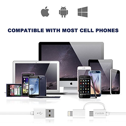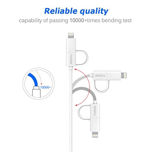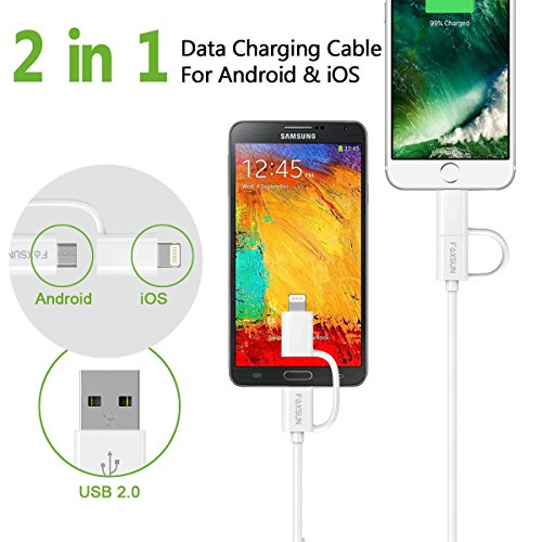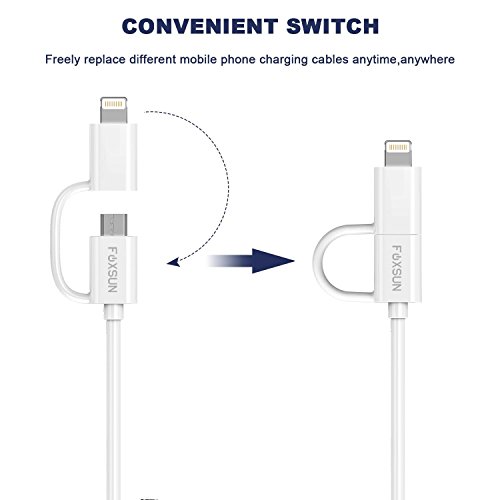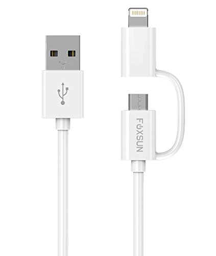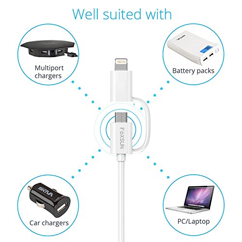 2 in 1 Lightning and Micro USB Cable,Foxsun 3.3ft/1m 2 in 1 USB Charging Cable Cord[Apple MFi Certified]for iPhone 7 /7 plus/6 /6s/6 Plus/6s plus/5s/5c/5/SE, iPad,iPod & Samsung and More(White)
