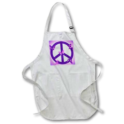 3dRose Pink and Purple Peace Sign and Butterflies- Inspirational Art - Full Length Apron, 22 by 30-Inch, black, with Pockets (apr_40233_4)