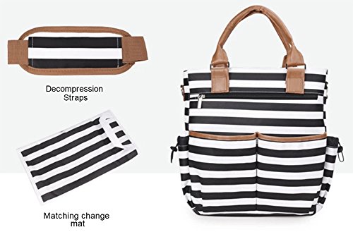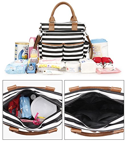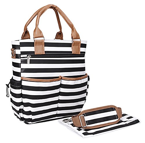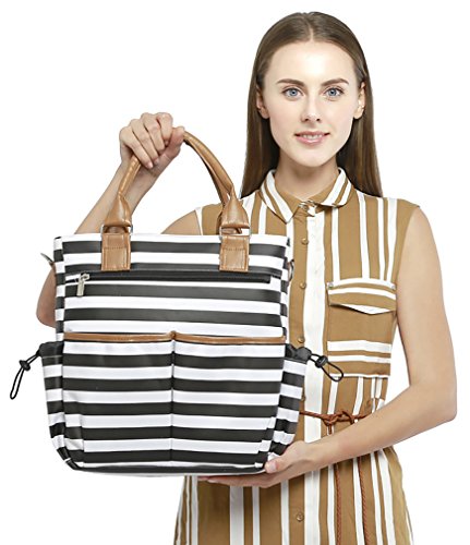 FASHIONABLE BABY DIAPER BAG - stroller bag for moms and dads. A fashionable unisex design, bright print- black and white stripes.Our stylish backpack style diaper bag reliably holds all your essential items for baby care,and you can use this bag not only as a diaper bag but as a stylish purse, beach bag or weekend bag.